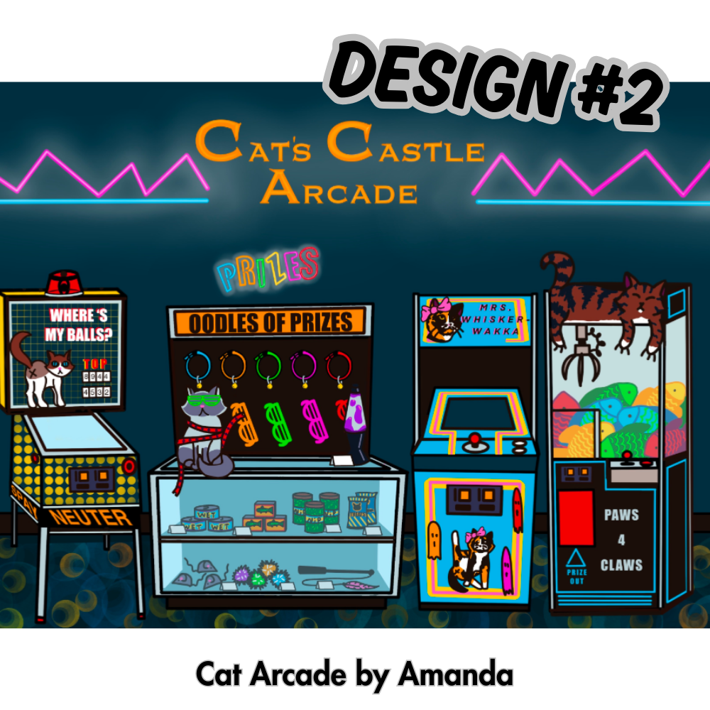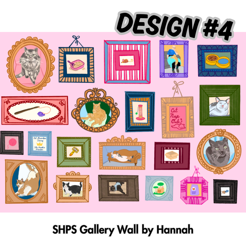 VOTE for your favorite mural to be painted inside of Safe Haven Pet Sanctuary! $1 non-refundable donation to SHPS = 1 vote –> see purchase options at bottom of page, add “tickets” (votes) to cart and send in your donation! Supporters are welcome to vote as many times they want, for as many designs as they want! At the end of voting period 4 artists with the most votes will have the oppurrrtunity to paint their designs inside of Safe Haven Pet Sanctuary, along with bonus goodies AND one grand prize will be awarded as well. Voting ended at 1/3/2025 at 11:59pm. THANK YOU EVERYONE, OVER $5,000 RAISED FOR THE KITTIES!