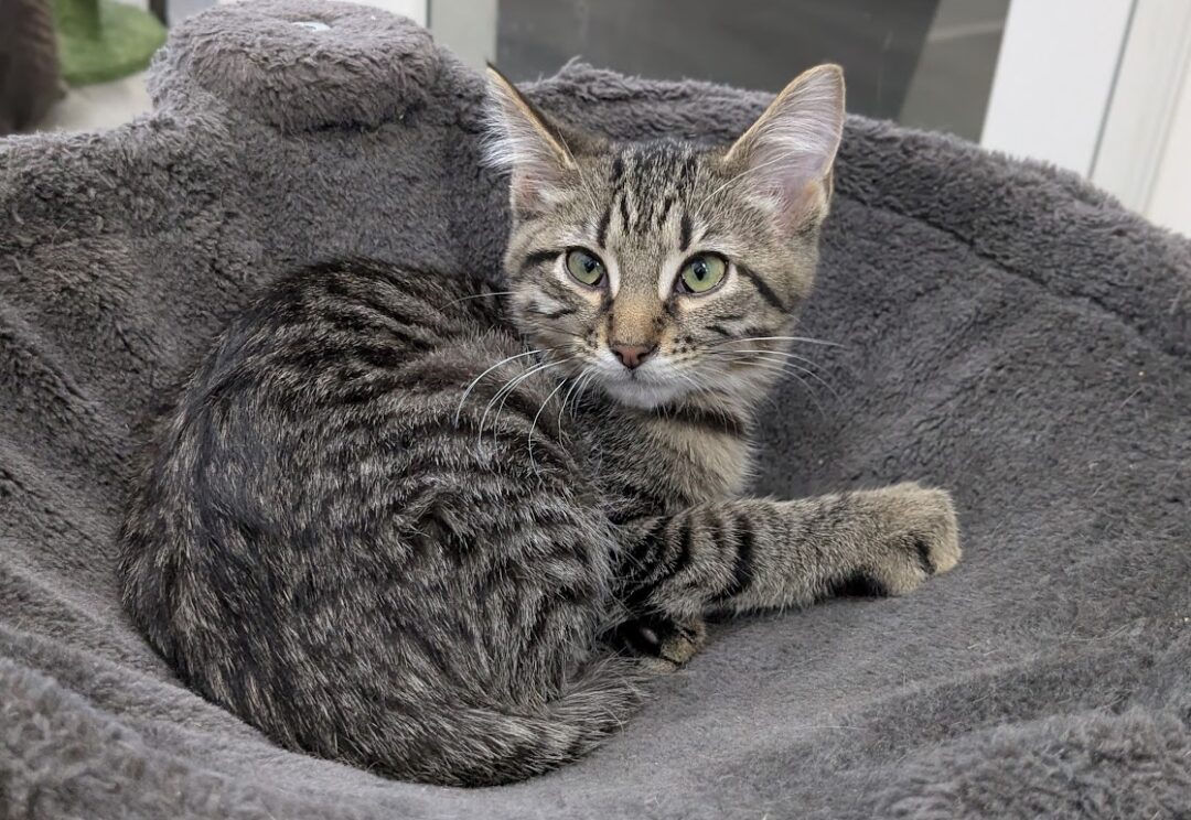 This kitten is social and would prefer to be adopted with another kitten, or have an age-appropriate feline friend at home already.