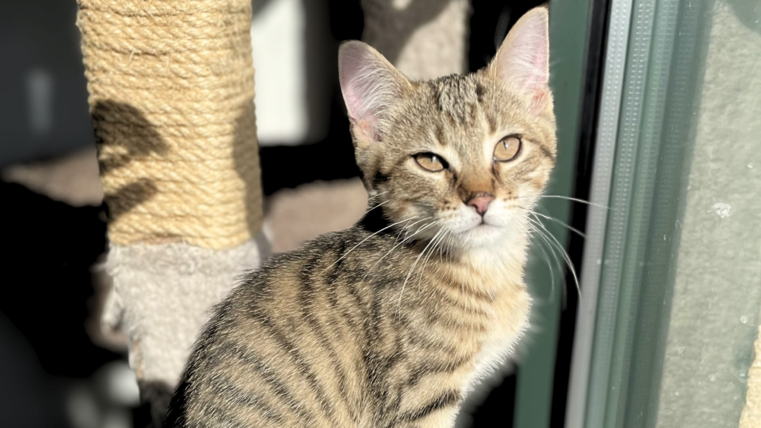 This kitten is social and would prefer to be adopted with another kitten, or have an age-appropriate feline friend at home already.