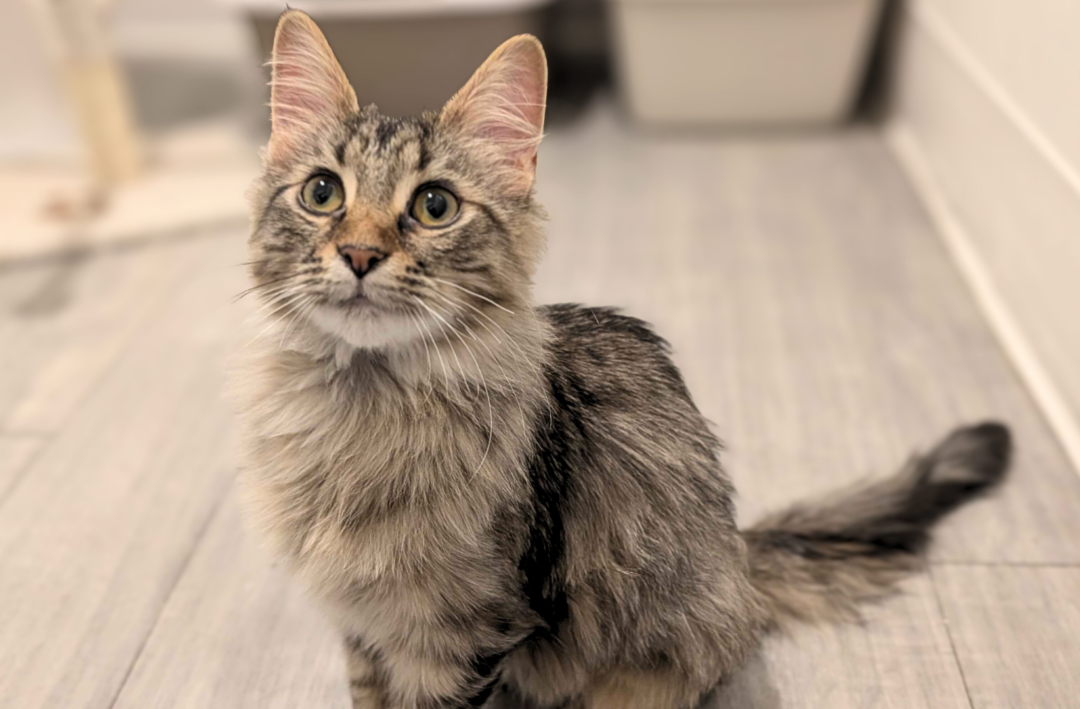 This kitten is social and would prefer to be adopted with another kitten, or have an age-appropriate feline friend at home already.